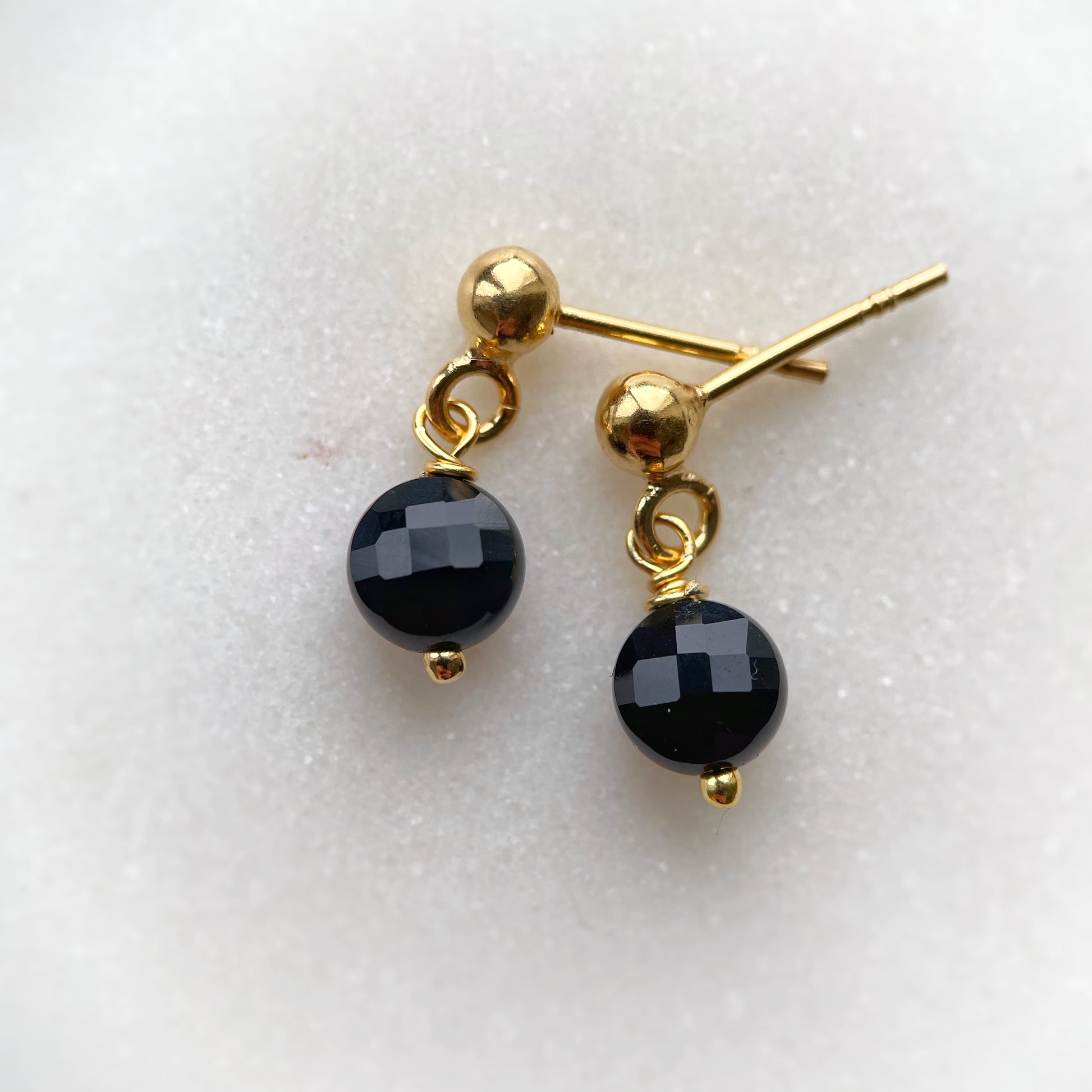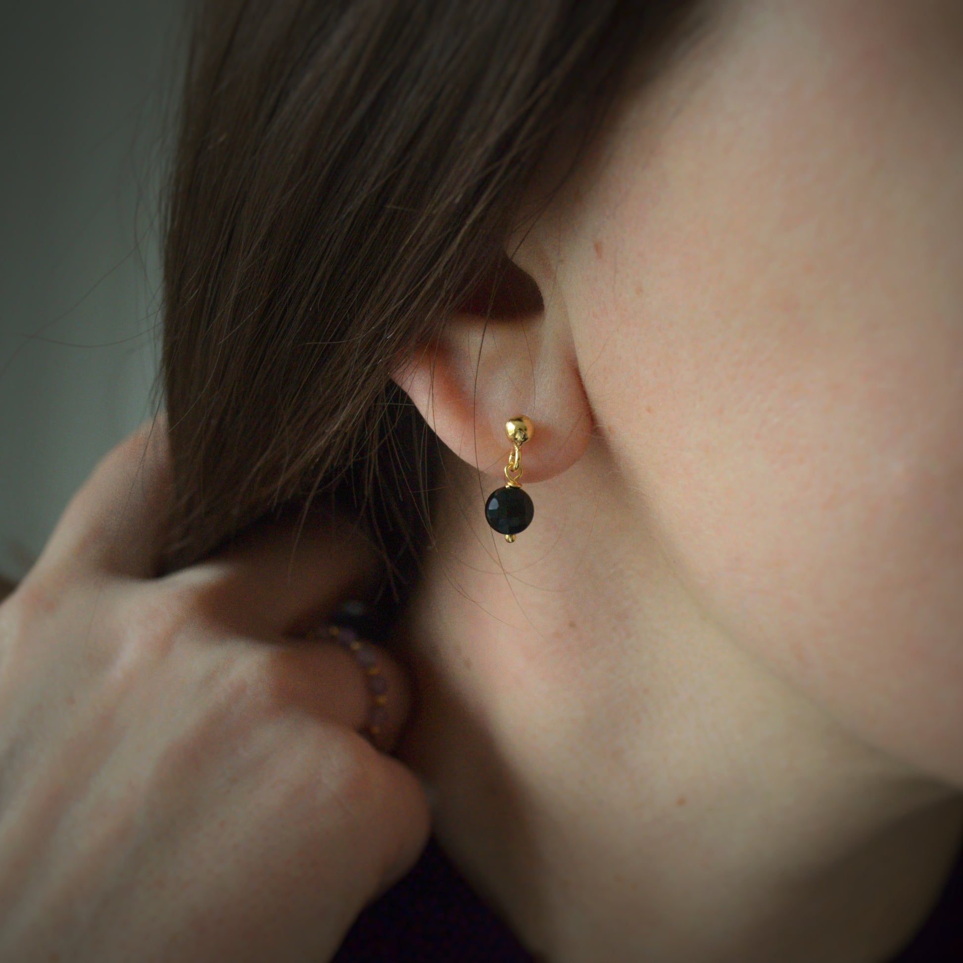 Simple but yet eye catching. Delicate earrings with natural black onyx coin bead.