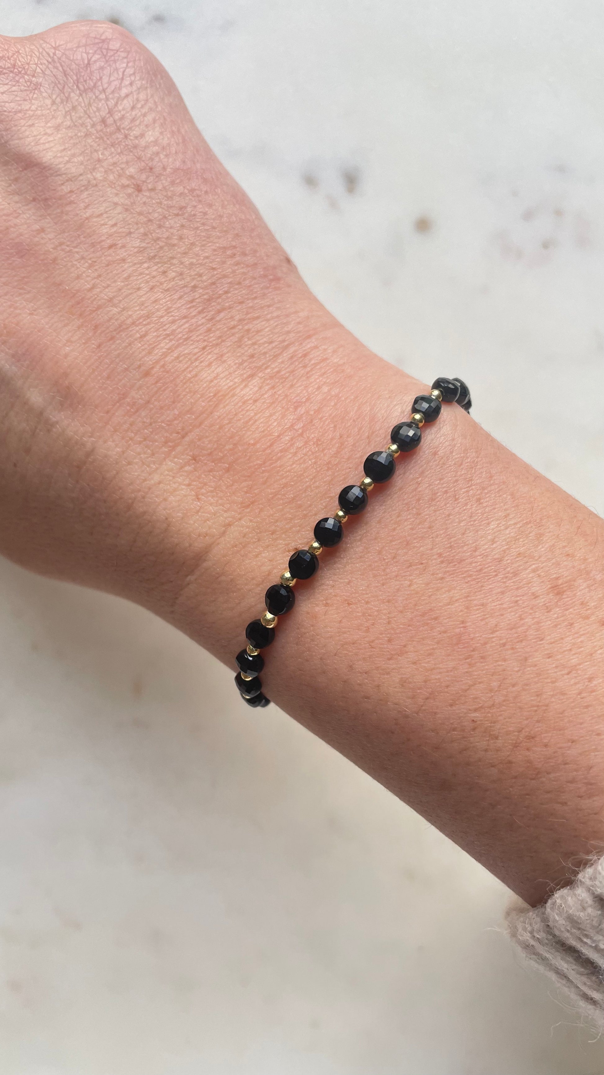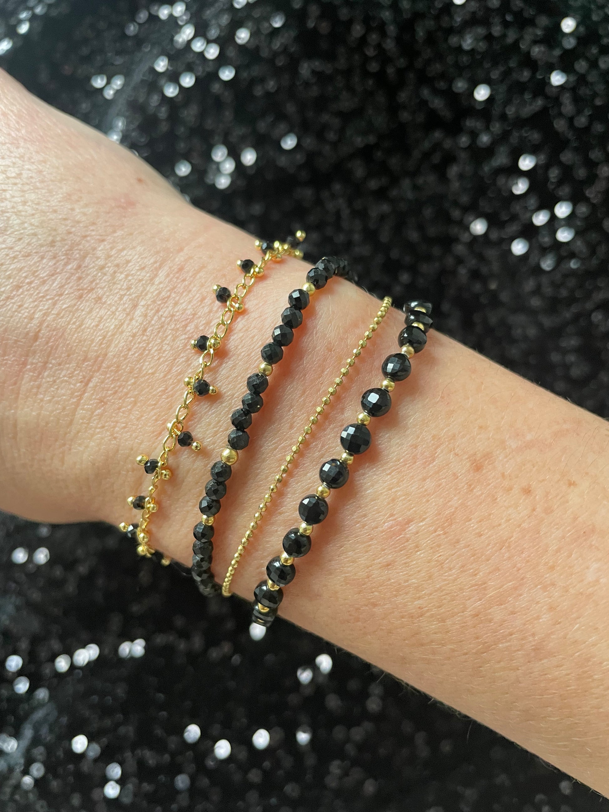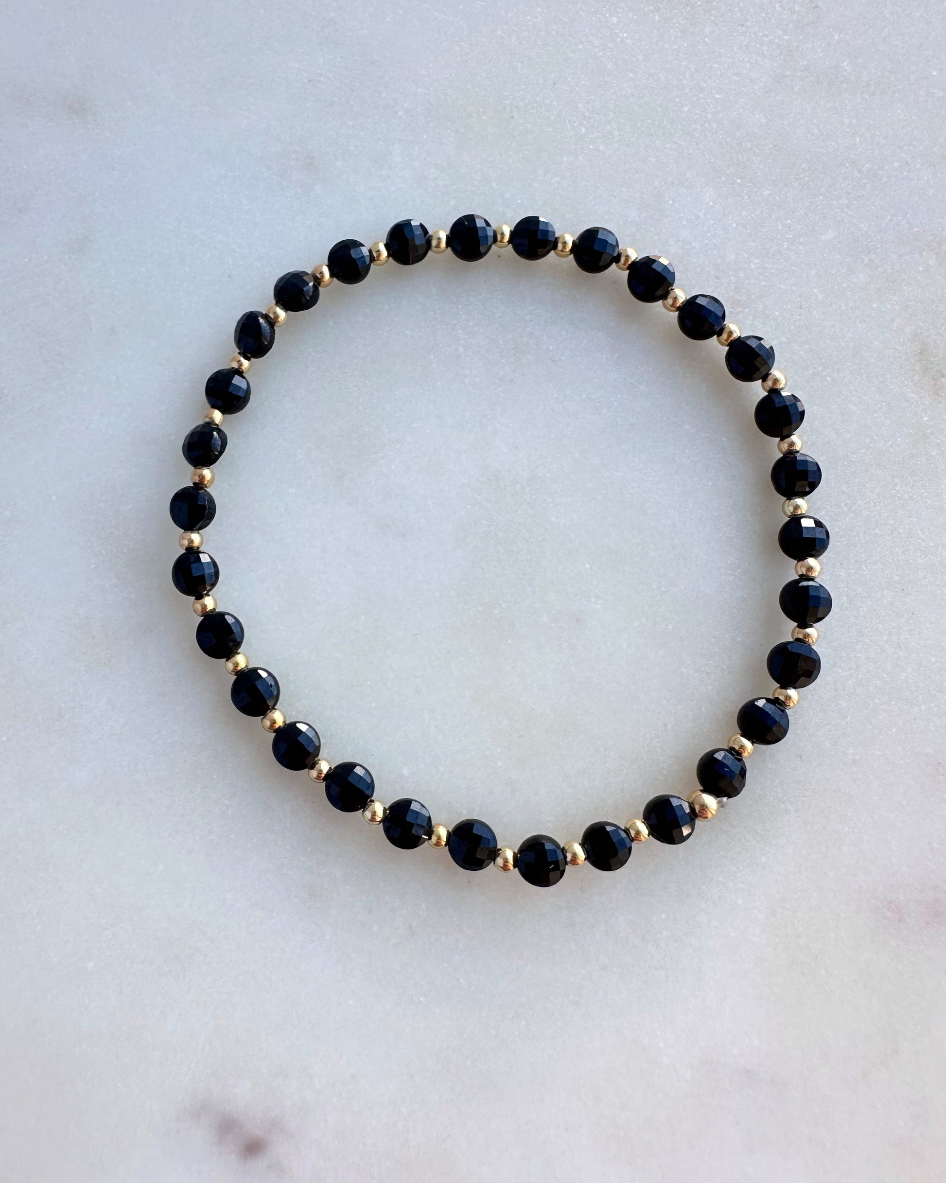 Elastic bracelet with incredibly sparkly natural black Spinel coins.