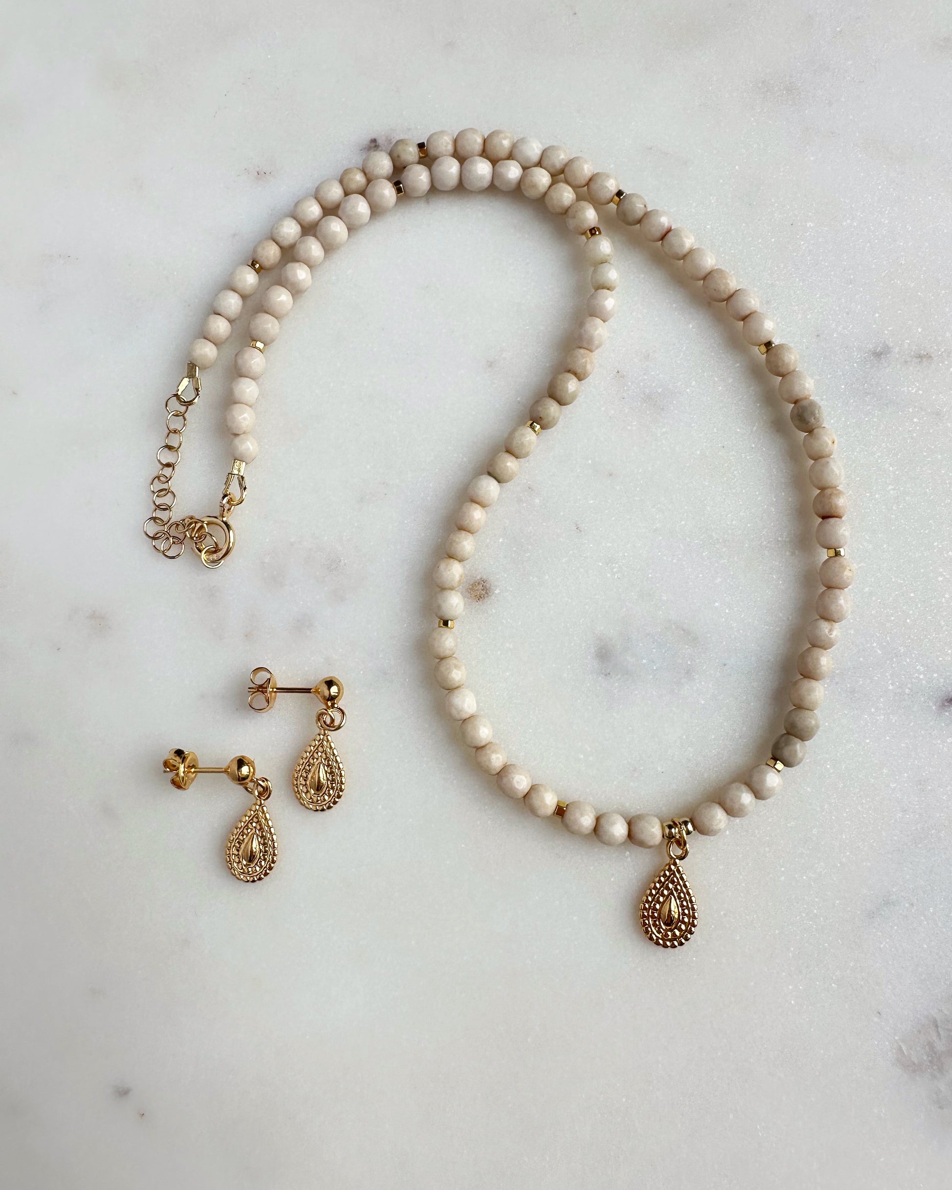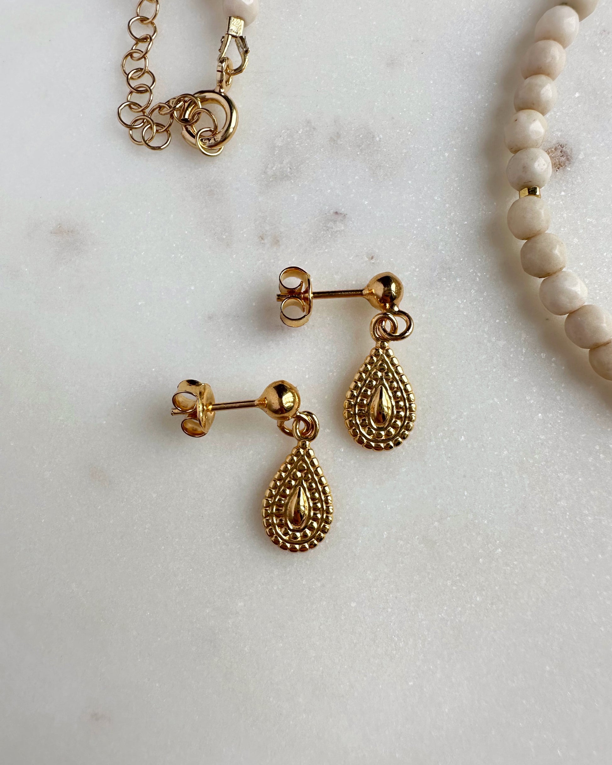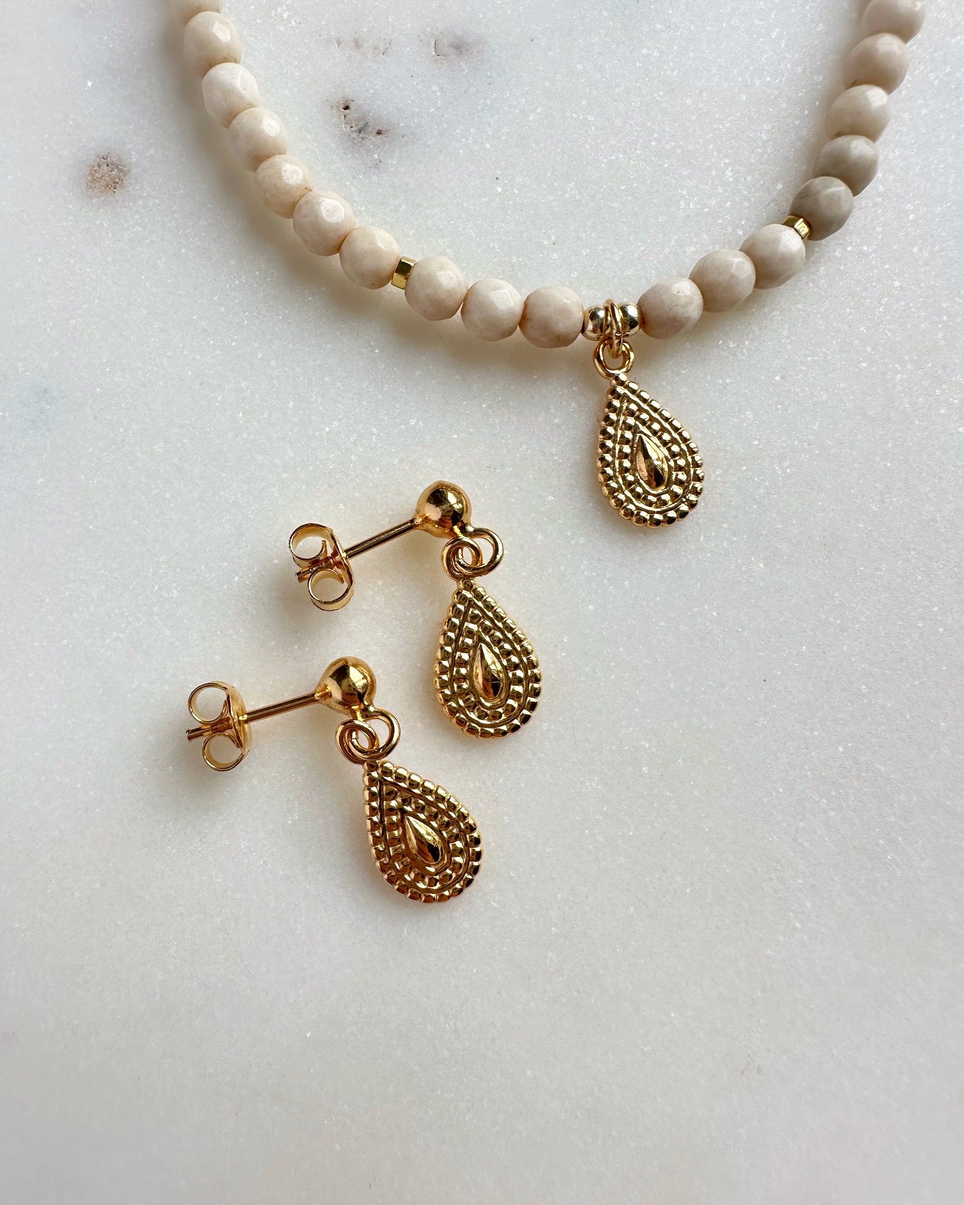 Crème earrings with beautiful drop pendants dangling on ball studs.