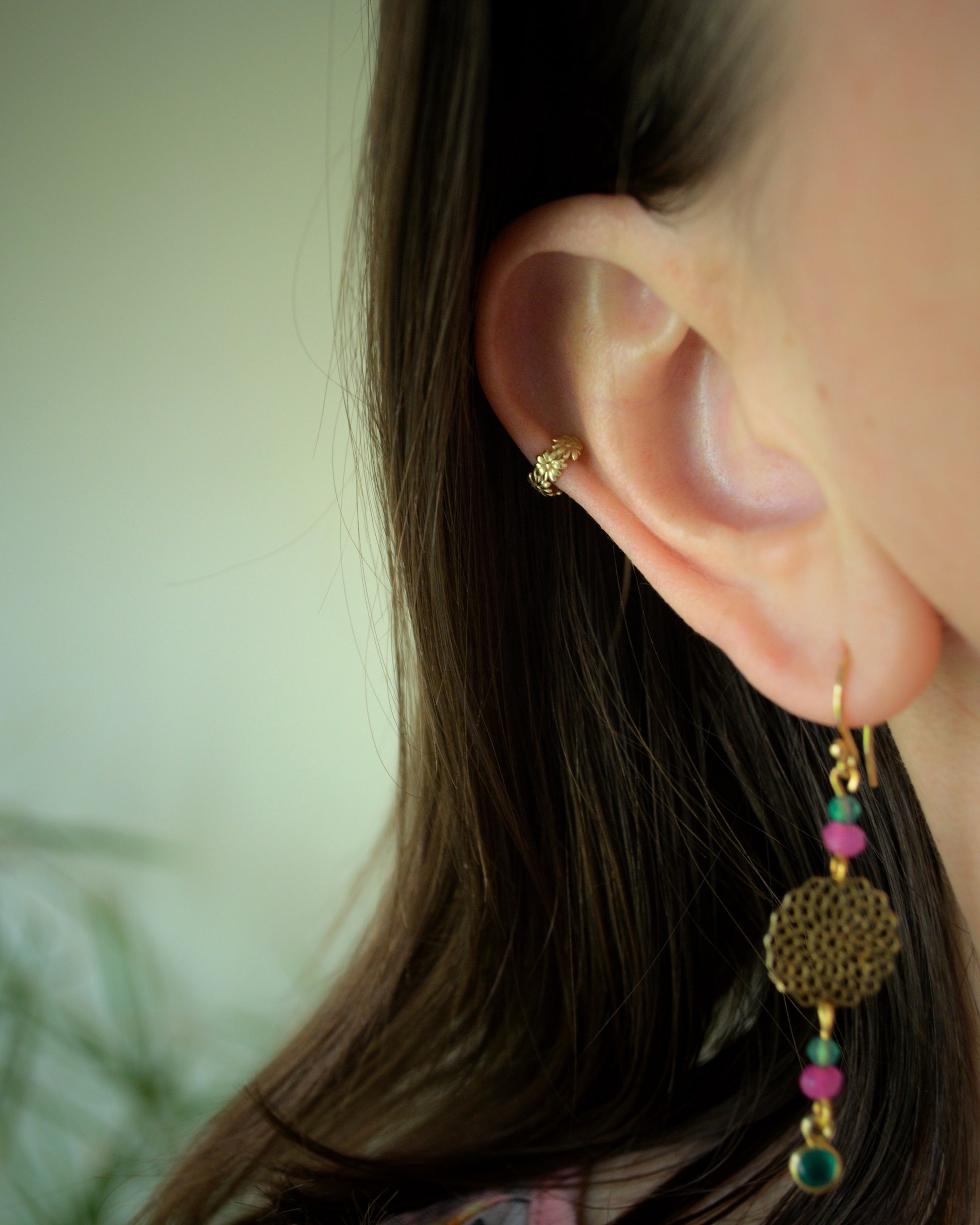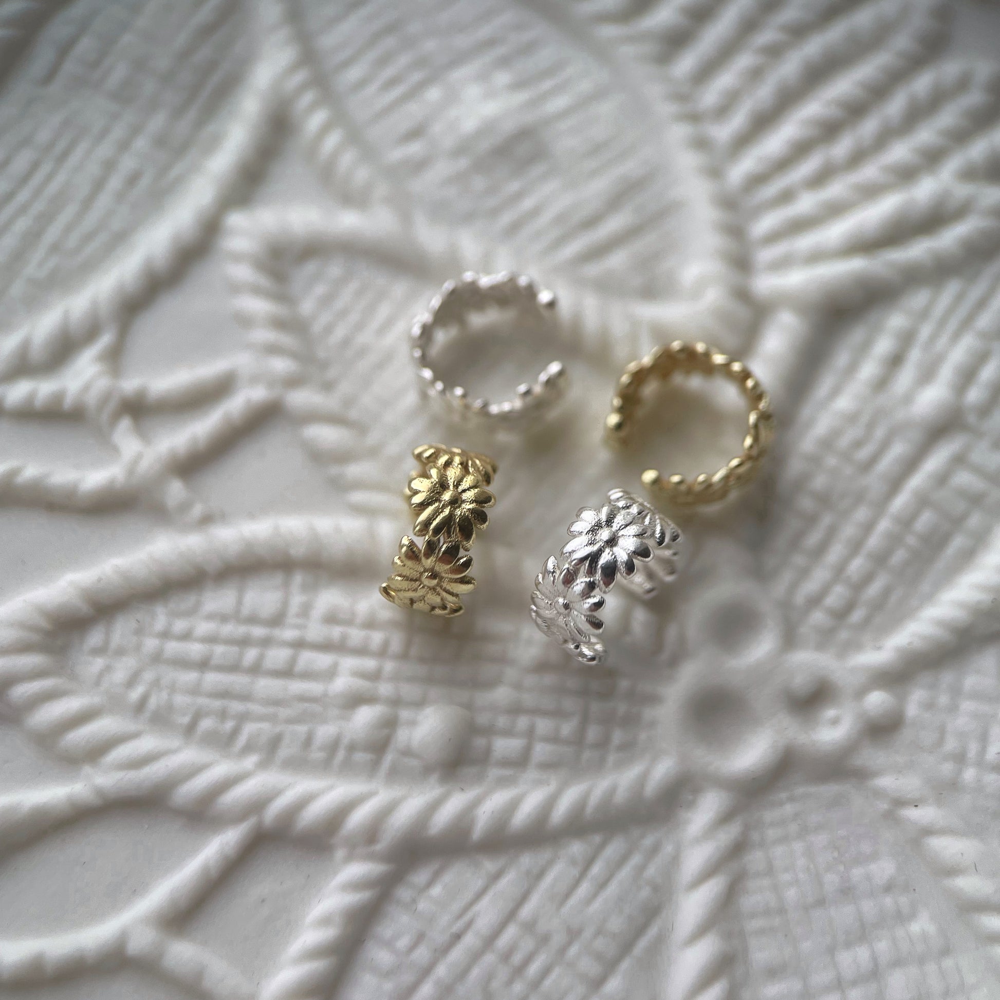 With no pain and all the gain, this cute little Daisy Ear cuff slides on and off easily for an instant upgrade to your ear stack.