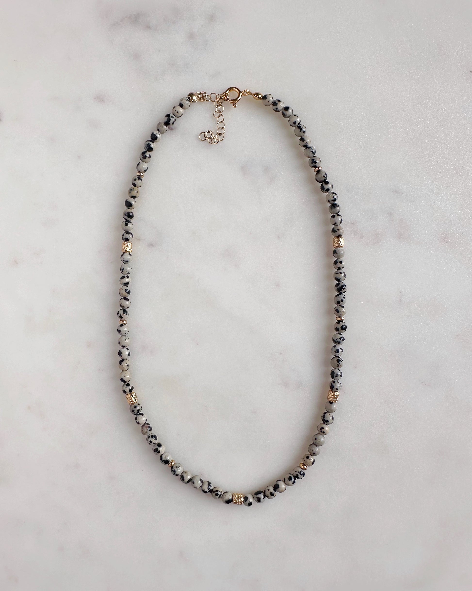 Handcrafted with care, this necklace not only adds a beautiful touch to any outfit but also serves as a reminder of your inner strength and resilience. Embrace the positive energy of Dalmatian Jasper and let it guide you towards prosperity and harmony in your life.