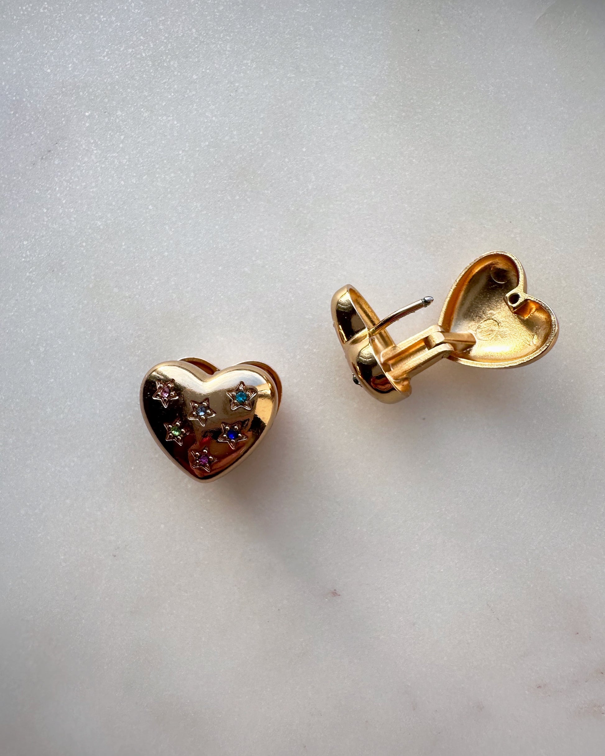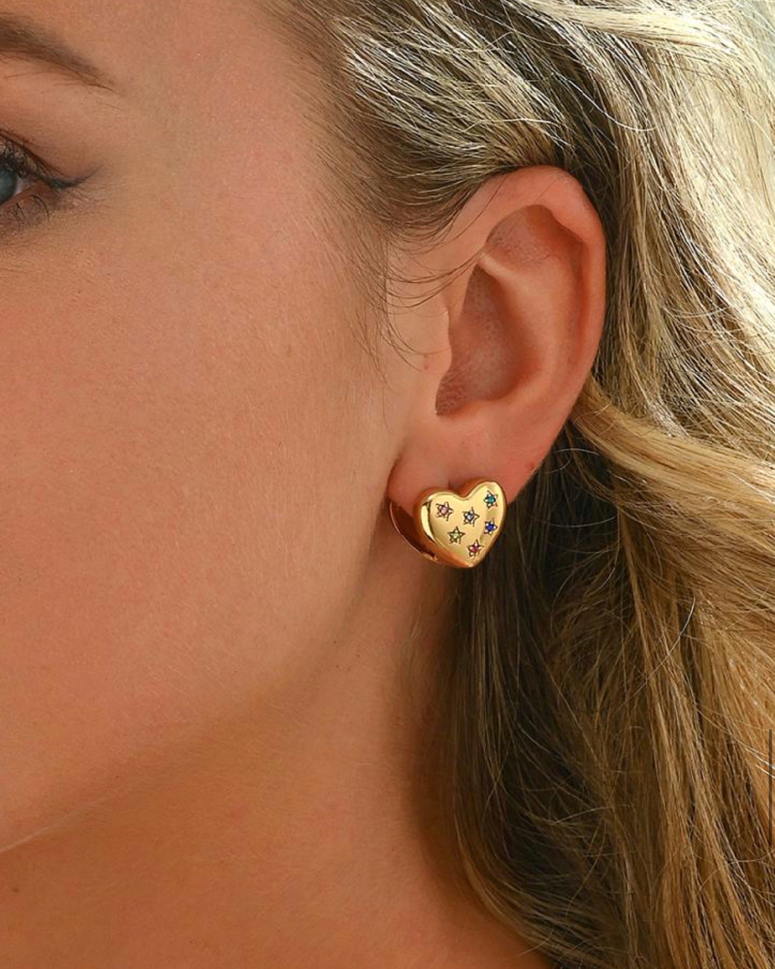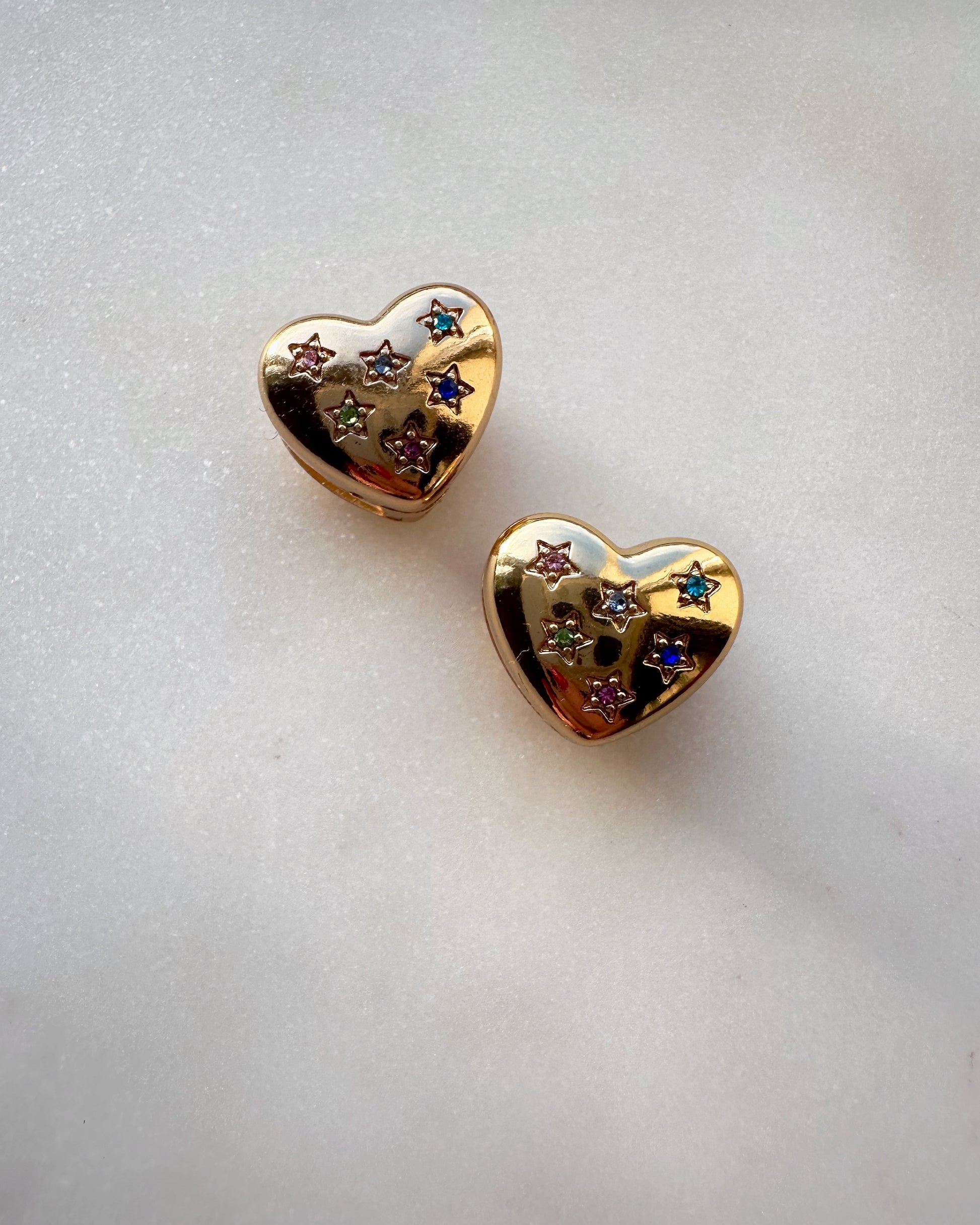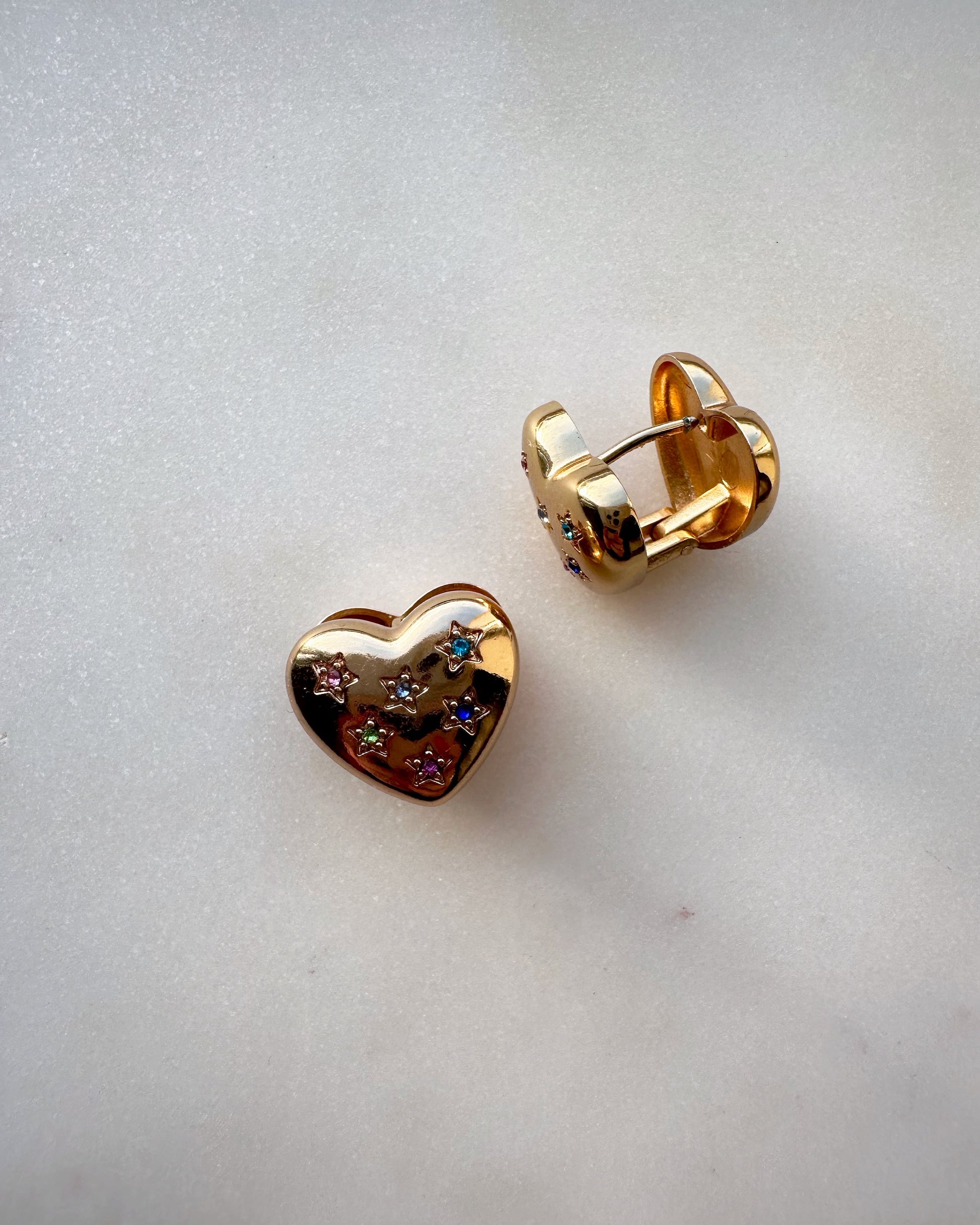 Stainless steel heart hoop earrings with colourful cubic zirconia.