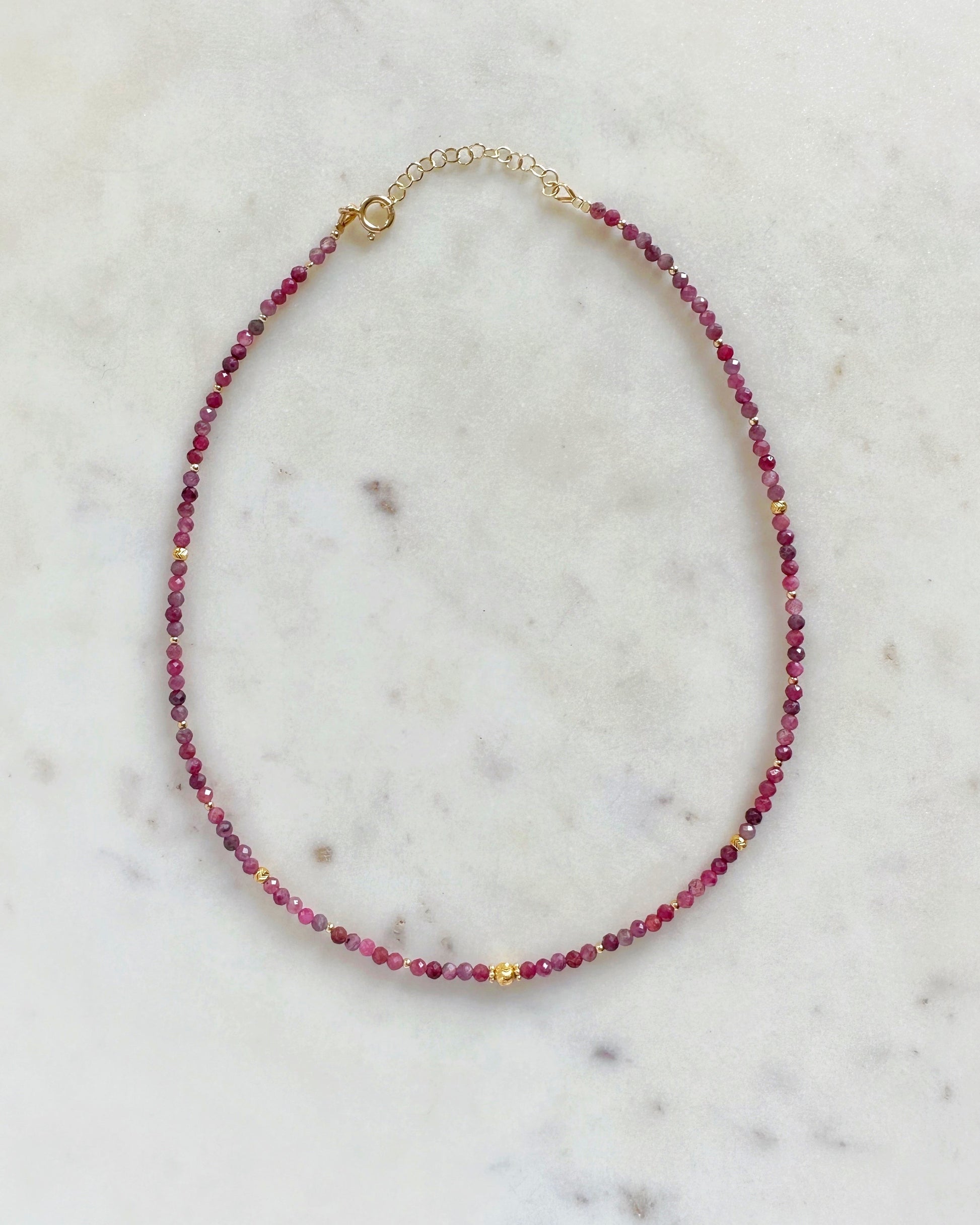 Merry necklace and bracelet set with Red Tourmaline crystals will give you subtle yet powerful expression of your inner vitality and zest for life.