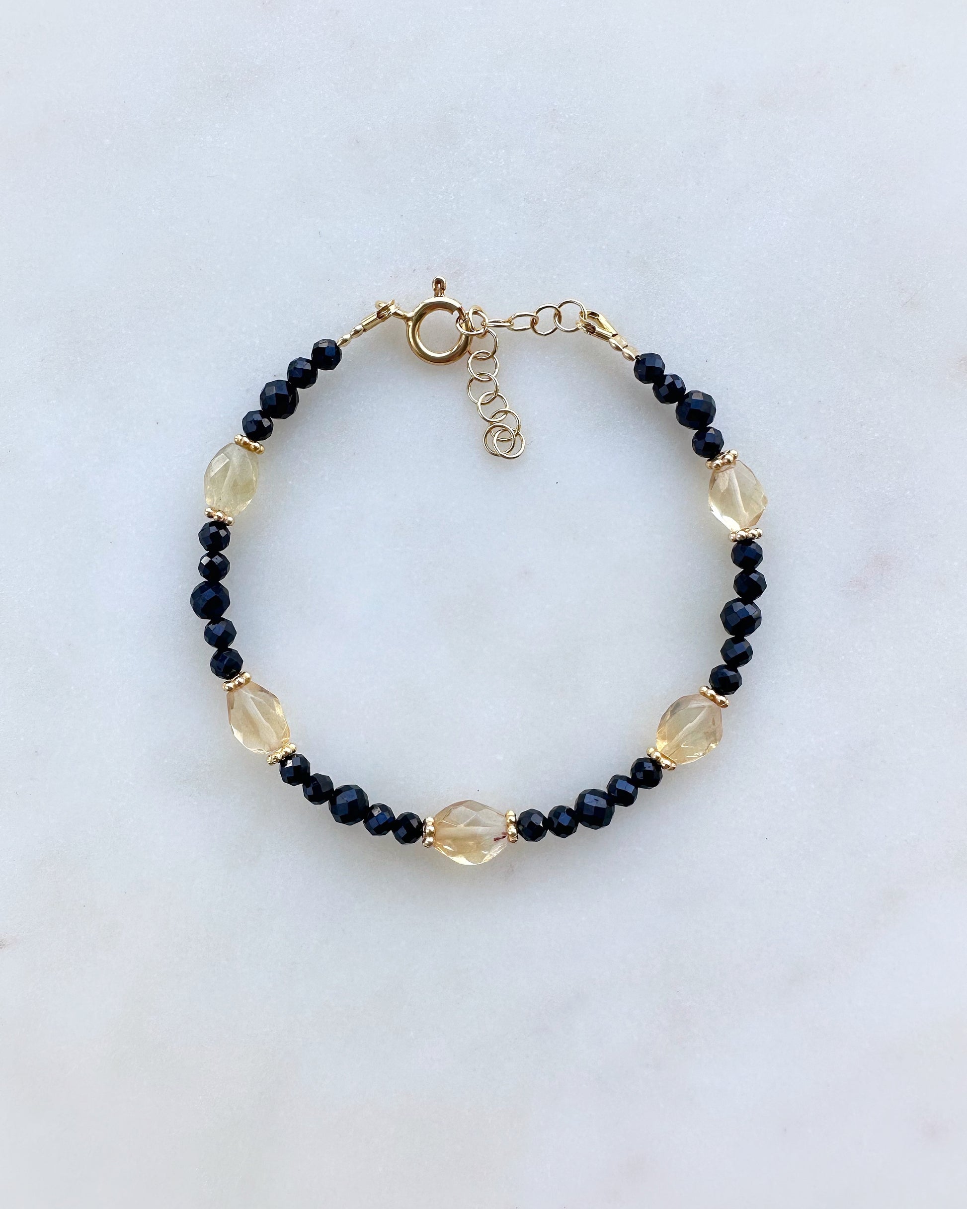 Bracelet with natural black Tourmaline and beautiful vibrant yellow Citrine crystals.