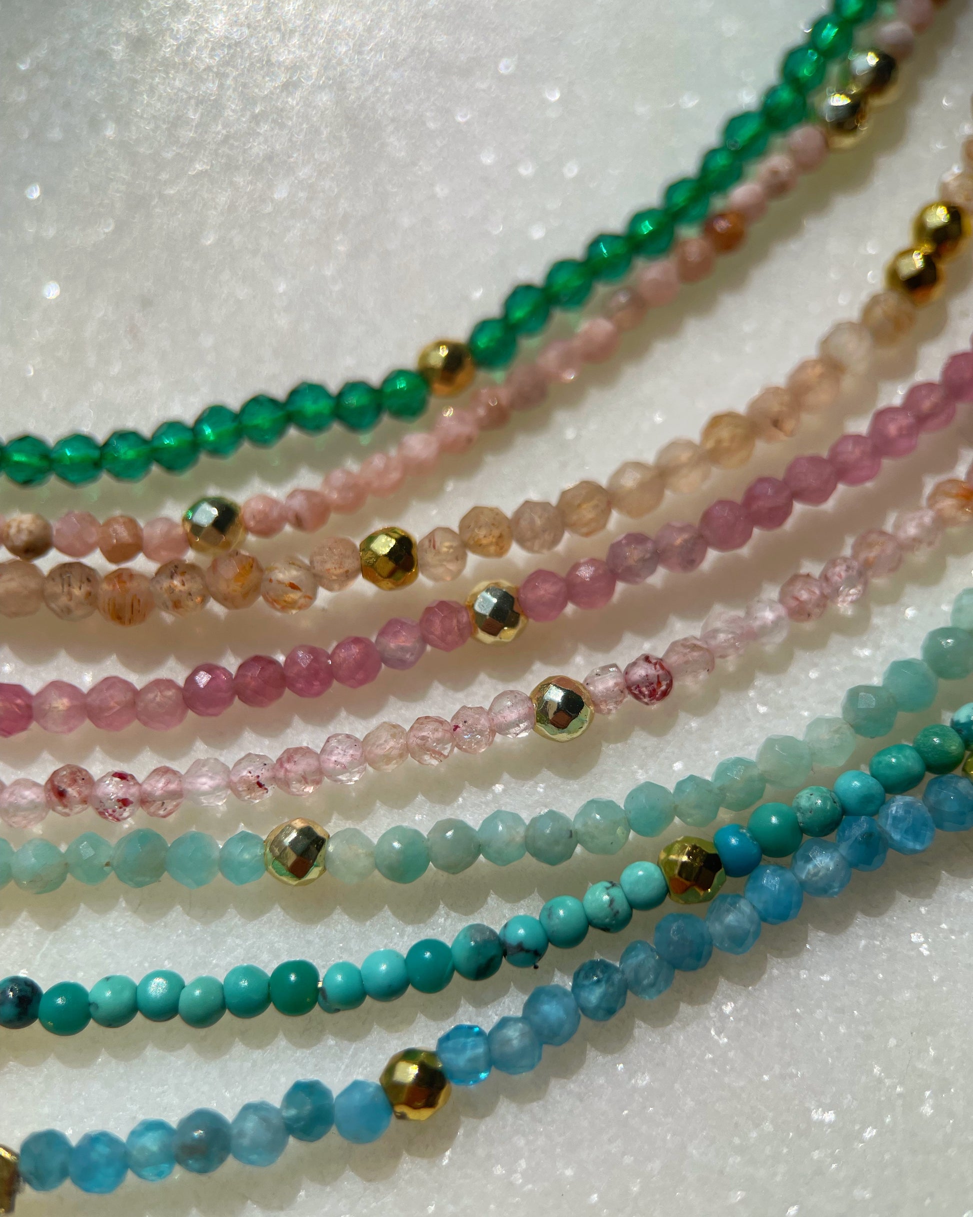 Crystals size is approx 1.8 - 2mm, gold or silver colour plated hematite beads for sparkle, sterling silver or 24k gold plated sterling silver clasp.