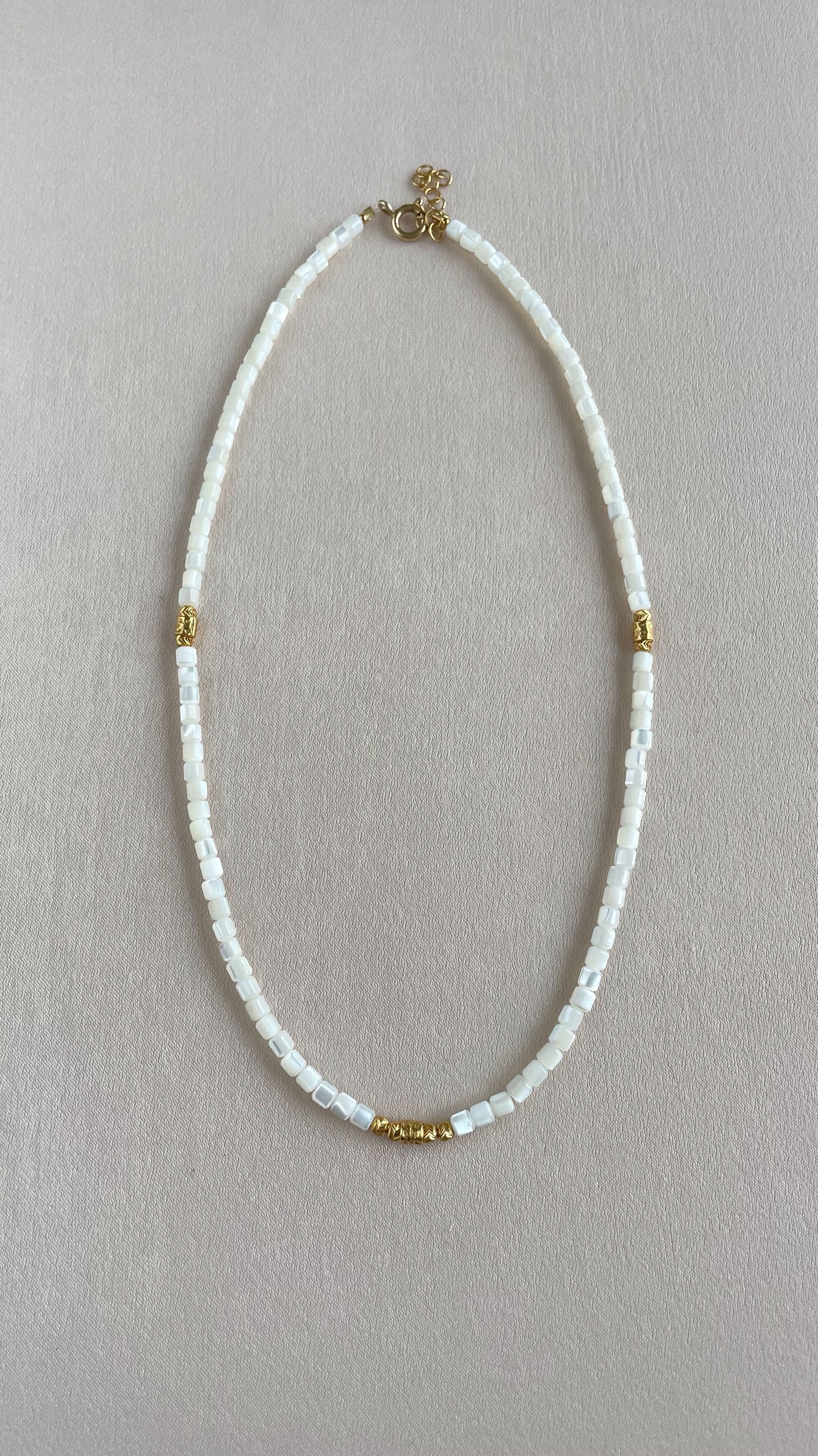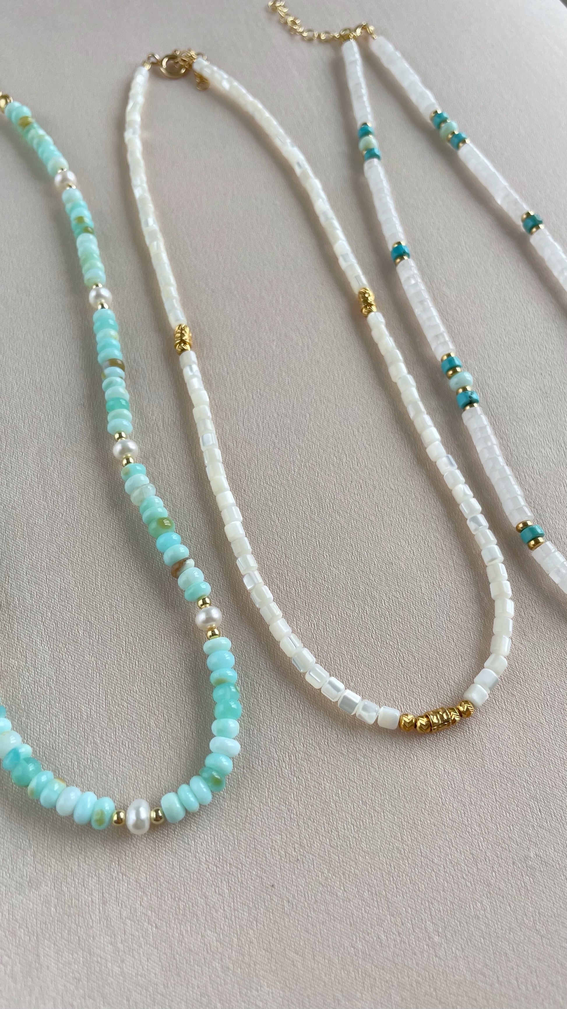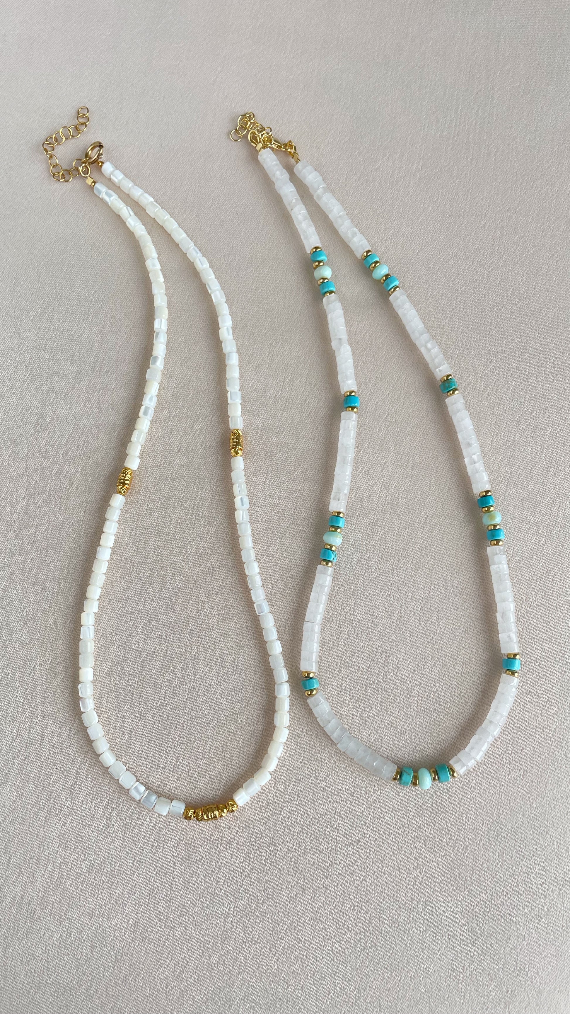 The natural beauty of the trochid shell beads is enhanced by the shimmering sterling silver or gold plated sterling silver spacers, creating a truly breathtaking piece of jewellery.