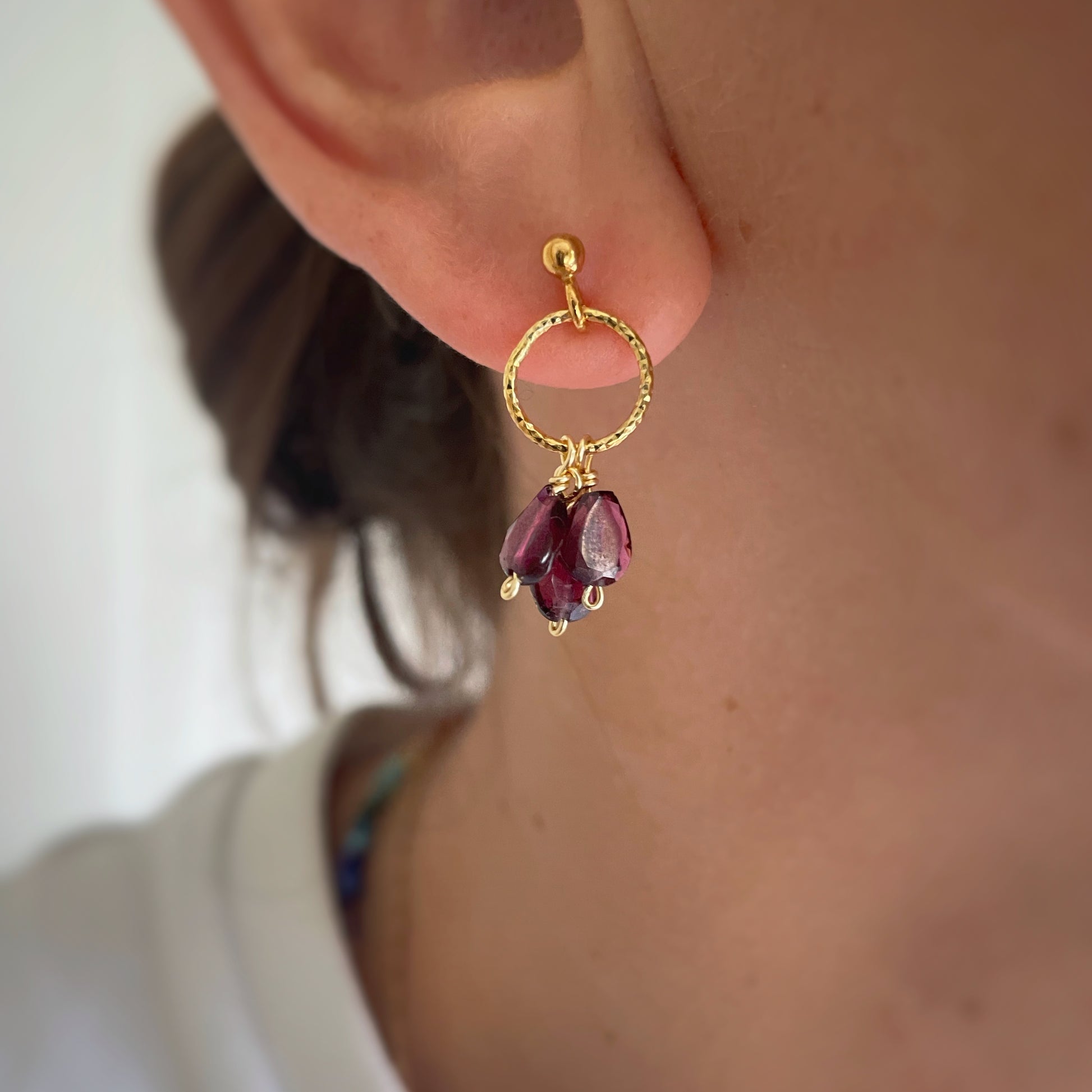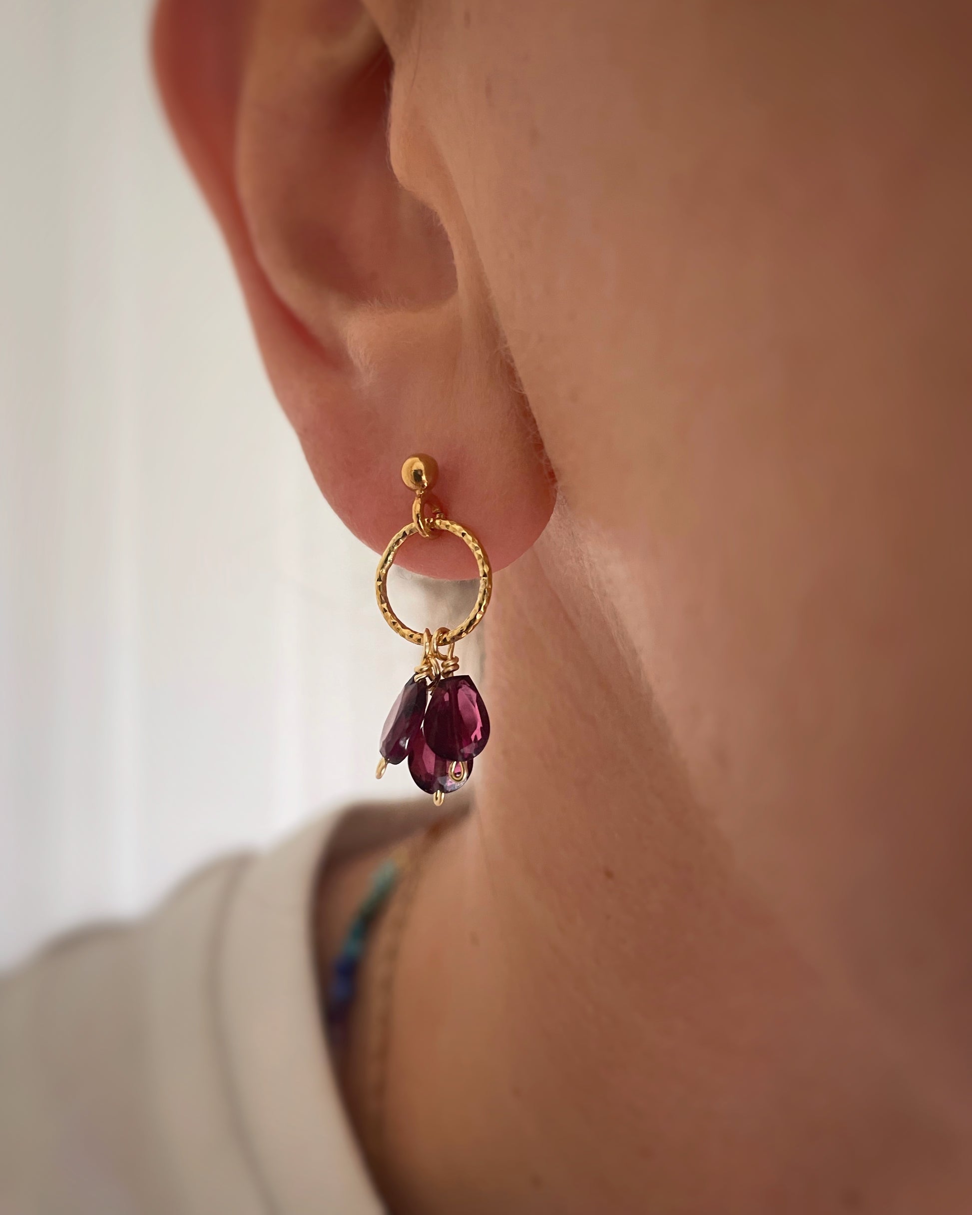 Stud earrings with natural Garnet crystals.