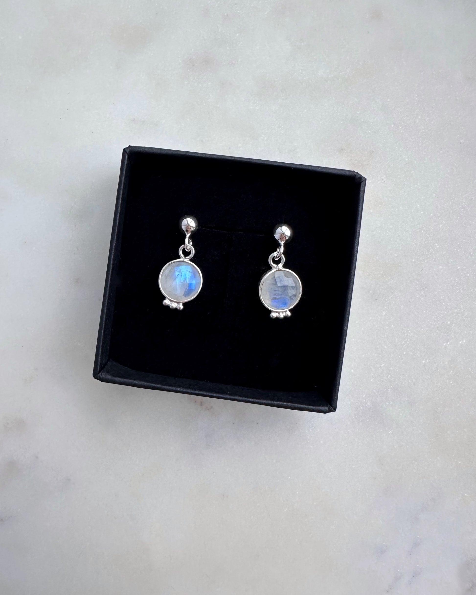 Silver Rainbow Moonstone earrings