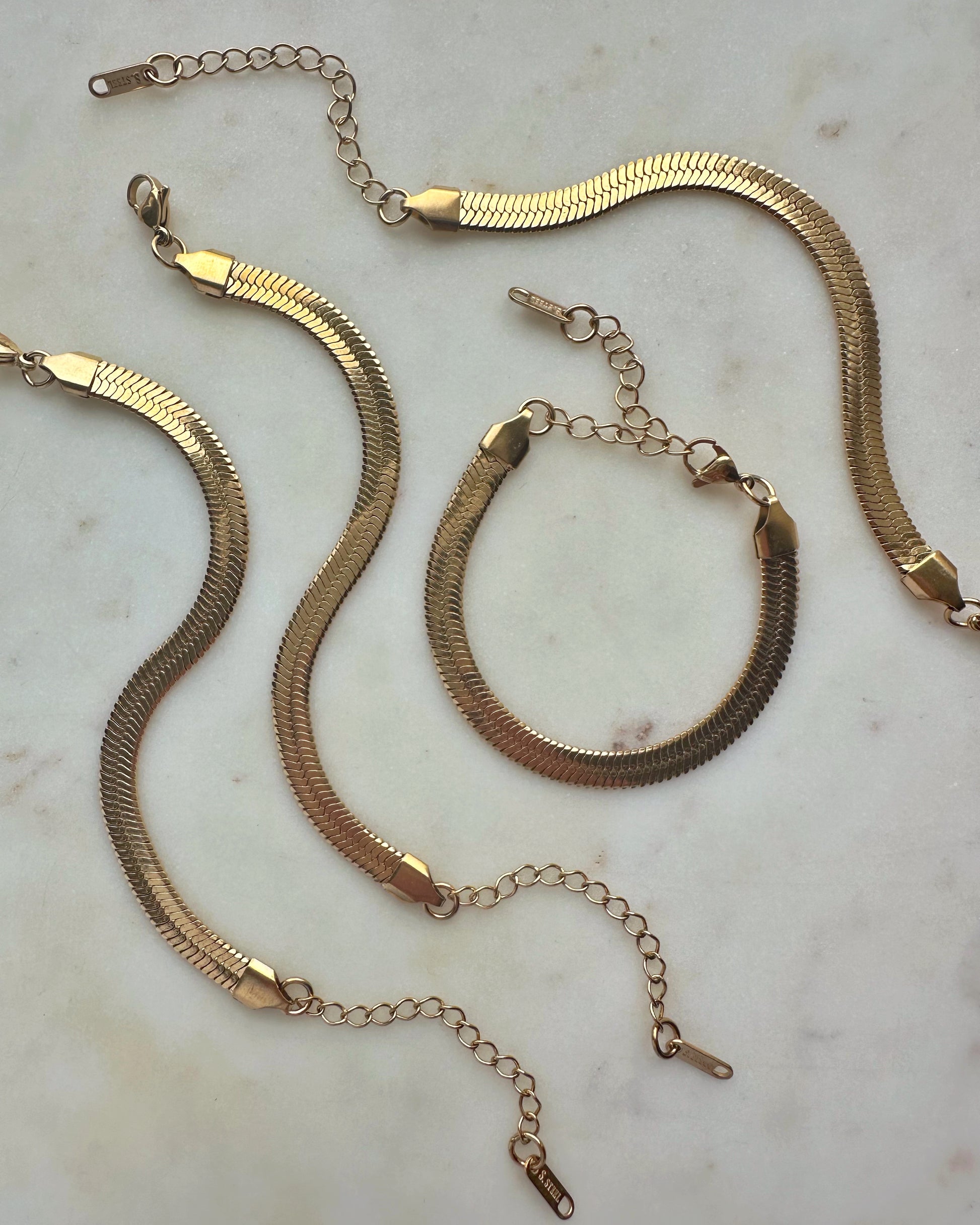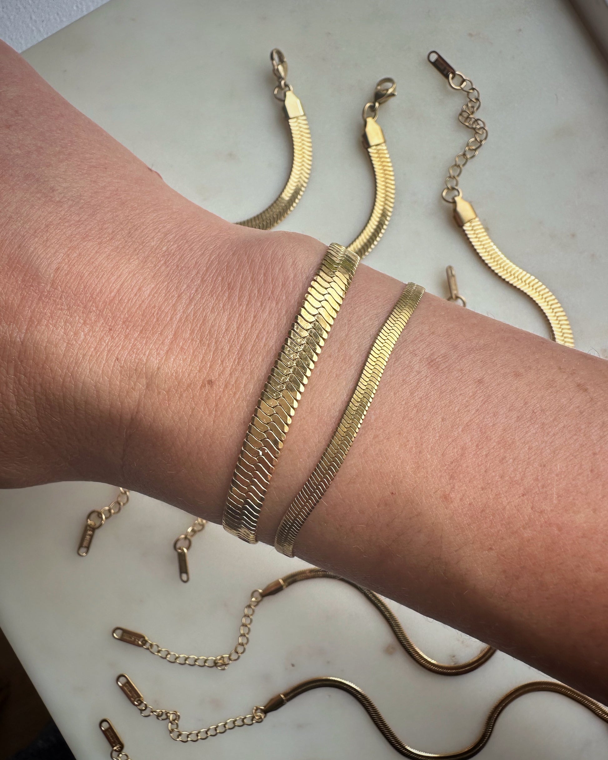 Stainless Steel Herringbone chain bracelets in 2 variants: 6mm and 4mm wide.