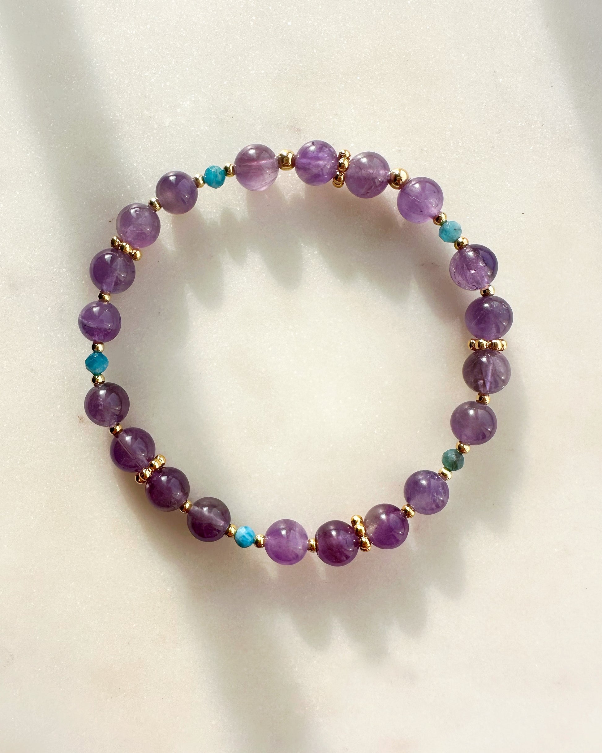 VIOLA bracelet with beautiful purple Amethyst and deep blue accents of Apatite crystals.